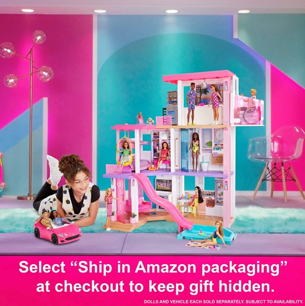 Measuring 43 inches tall and 41 inches wide, the fully furnished barbie dreamhouse inspires endless imagination with 10 indoor and outdoor play areas, customizable features and 75+ storytelling pieces! Dreamy features include a working elevator, party room with a dj booth, second-story slide with a pool, balcony with a repositionable hammock swing and a puppy play area with its own pool and slide. Customizations let kids design their own dream home -the grass area and pool can be placed in multiple configurations on the first and third floors, and the slide fits in 4 unique locations! Set the scene for any story with realistic sound effects, 2 soundscapes, 3 songs, 8 light color options, and 4 light settings including day mode, night mode, party mode and mood lighting. A third-floor balcony and rooftop deck inspire outdoor living -bring everyone upstairs in the working elevator that can lift and lower 4 dolls or a barbie doll in a wheelchair! Discover wow moments on every floor with transforming pieces, like a bunk bed that folds down from the wall, a bbq grill that reverses to reveal a dessert buffet and an entertainment center that doubles as a pet area. Bring detail to playtime with 75+ storytelling pieces featuring realistic touches and textures, like plush blankets, modern decor and grass that’s soft to the touch! Kids ages 3 years old and up can move right into the barbie dreamhouse and discover playtime possibilities in every room. With customizable options and so many play areas, they’ll never run out of stories to tell!. Kids & Baby > Toys > Dolls & Dollhouses. Barbie.