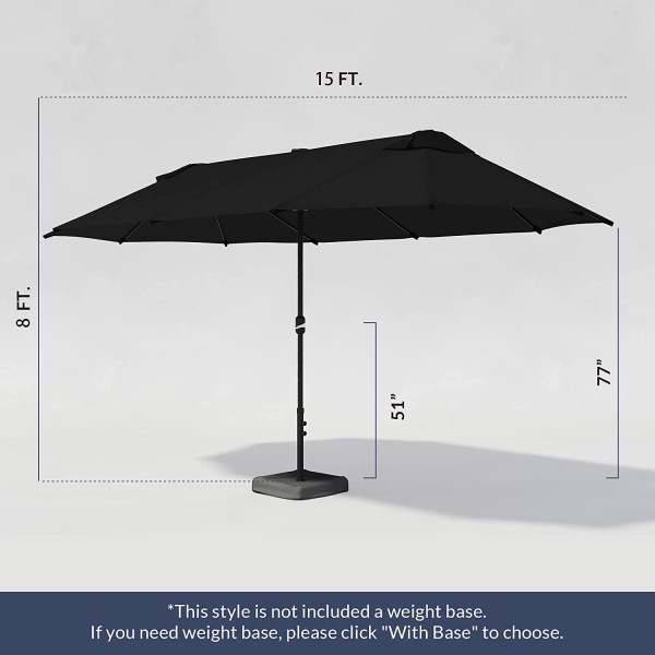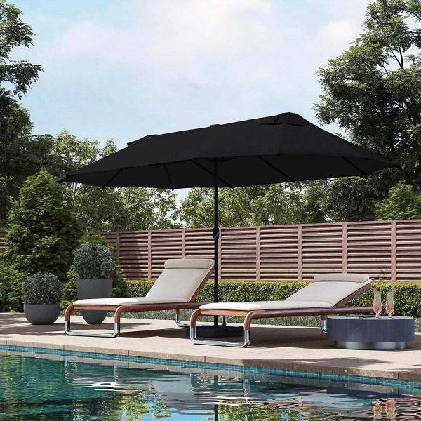 Belleze 15 ft Extra Large Outdoor Market Patio Umbrella Double-Sided Design with Crank, Black