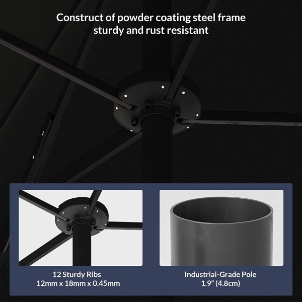 Be the first to review “Belleze 15 ft Extra Large Outdoor Market Patio Umbrella Double-Sided Design with Crank, Black” Cancel reply