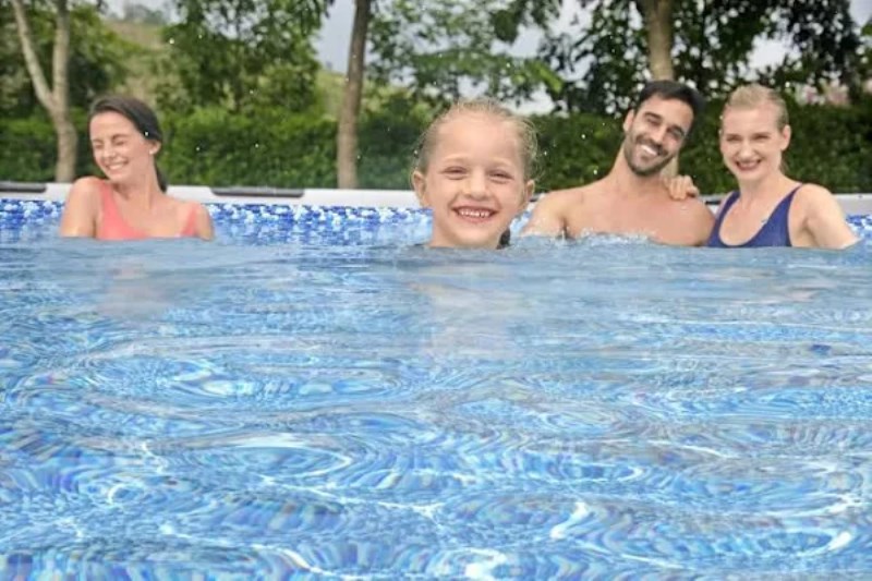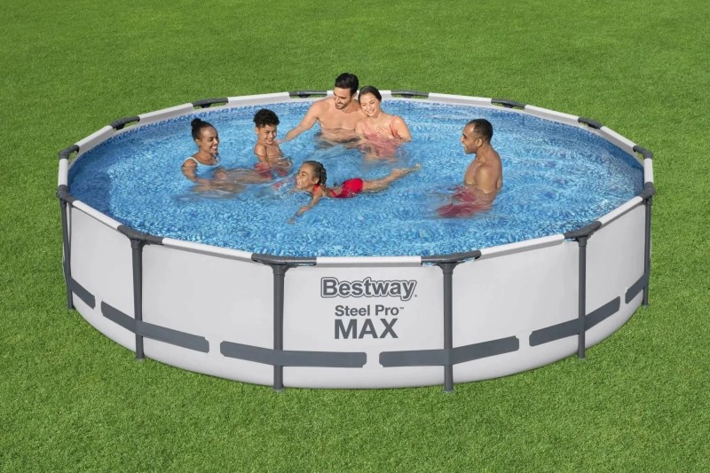 ENDLESS SUMMER FUN: Kids and adults of all ages can enjoy swimming and splashing in Bestway’s Steel Pro MAX Above Ground Pool, an above ground pool designed with extremely rigid, oval-shaped frame for increased strength and durability. SUPERIOR FRAME DESIGN: The pool frames are applied with a rust and corrosion-resistant coating to protect the pool from UV and abrasion damage. A 3-ply PVC support band surrounds the pool for additional stability to the pool wall. MADE TO LAST: A durable, yet lightweight PVC material provides structural integrity to your pool. It’s tear-resistant and won’t fade overtime to sun exposure. EASY TO ASSEMBLE: No tools are required to install this above ground pool in your backyard. A flow-controlled drain valve provides a simple solution for emptying the excess water. Get ready to have hot summer fun in minutes! PATENTED POOL FRAME: The Seal & Lock System s each joint connection is secure and resistant to bending or leaking. The pin-clip design also ensures each joint connects with ease.