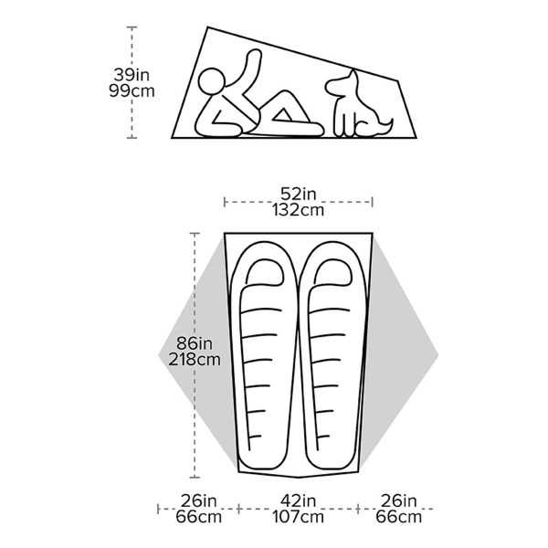 Big Agnes Tiger Wall UL2 2-man tent sand/orange – If you’re in the market for a lightweight 2-man tent for trekking, bikepacking and multi-day bike tours, then look no further than the Tiger Wall UL2 from Big Agnes! Both the tent’s light weight and small pack size make it ideal for backpackers.It features two interior mesh pockets and an oversized mesh pocket under the ceiling to provide plenty of space for your personal items. The DAC Featherlite NFL poles are made of particularly lightweight aluminium and can be quickly and easily assembled thanks to the colour coding system. Plus, featuring a silicone coating and a PU-coating on both the floor and the flysheet, the tent is guaranteed to be protected against moisture. For additional protection, it’s equipped with waterproof taped seams, and both the floor and the flysheet have a hydrostatic head of 1200 mm. Some other great features include the reflective guy lines that provide enhanced safety when walking in the dark. In addition, the freestanding tent has two entrances and two vestibules that provide enough space for your luggage. Plus, the inner tent is made of a breathable mesh fabric that allows the air to circulate inside, and it ensures that moisture is reliably wicked away to the outside.Weighing less than a kilo, the ultralight dome tent can be easily transported, and it won’t take up much space in your luggage. Thanks to the included Dirt Dagger UL lightweight aluminium pegs, the Tiger Wall UL2 2-man tent from Big Agnes can be securely fixed to the ground.