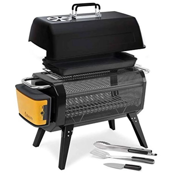 FirePit+ offers the full experience of a wood campfire without the smoke. 51 Airjets inject fire with oxygen for combustion improvement. 12800mAh USB rechargeable powerpack runs the fan up to 30 hours on a single charge. Folding legs. Grill grate supports hibachi-style meals. Fuel w/ wood or charcoal. X-Ray mesh. Control the fan w/ BioLite Energy app. Low fan burn time up to 30 hours (7 hours high 14 hours medium). Dimensions with legs unfolded: 27″W x 13″D x 15.8″H. Includes: Grill grate. Fuel rack. USB-A to Micro USB cord.