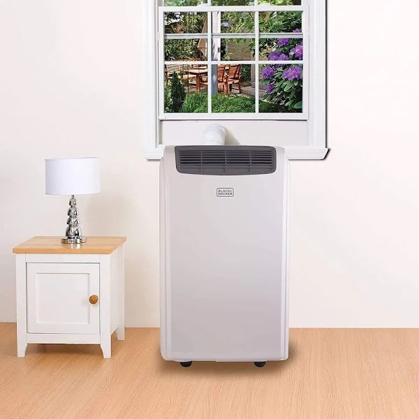 Enjoy a comfortable home climate with this versatile Black & Decker 10,000-BTU Portable Air Conditioner. It cools, dehumidifies and circulates air to help keep a room cool and comfortable. This portable air conditioner with a remote features easy-to-use electronic controls and a quiet operation, so it can even be used at night and will not disturb sleepers. It has rolling casters and carrying handles for easy-to-maneuver mobile comfort. The 3-in-1 air conditioner even has a 24-hour timer and sleep mode, so it can be programmed to power off as desired. The simple and elegant design makes it stylish enough for any room. This Black & Decker 10,000-BTU Portable Air Conditioner includes a complete installation kit and an owner’s manual.