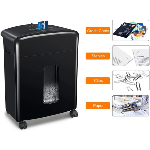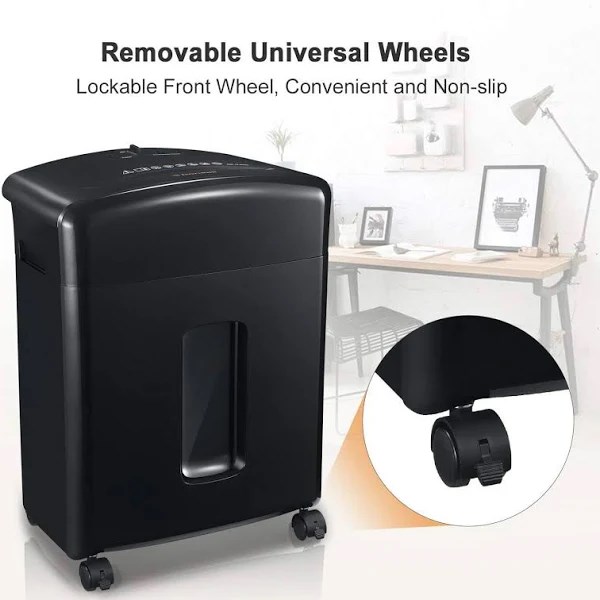 Keep your confidential information confidential with the Bonsaii Portable 12-Sheet Cross-Cut Paper Shredder. Ideal for personal or professional use, this shred bin is perfect for your workplace, home, or home office. Effortlessly shred up to 12 sheets of paper, plastic cards, CD/DVD discs, plus clips and staples all in 1 sitting with this heavy-duty shredder. Whether you’re disposing of receipts, bills, pay stubs, and other unwanted documents, this multi-purpose office shredder keeps your private information safe and secure. Easy to use, simply turn on the machine, and let the solid steel cutters do the rest. The motor works automatically when the sensor detects an item in the entry port and runs continuously for up to 5 minutes to help save valuable time. Easily see when the 3.5-gallon-capacity wastebasket needs emptying through the built-in transparent window. When full, simply pull-out the bin and discard the confetti waste into the trash. Equipped with 4 universal removable casters, this unit is easy to transport from room-to-room whenever you need. Don’t let your personal information get into the wrong hands. Safely shred documents, expired credit cards, and more with the Bonsaii Shredder Bin.