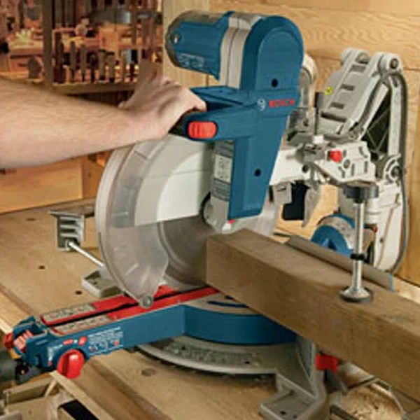 This dual-bevel 12-in glide Bosch mitre saw features a smooth cutting motion, accurate performance and a space-saving patented Axial-Glide system, which is exclusive to Bosch. Pre-aligned Squarelock fences help ensure precision throughout the saw’s entire lifespan. The hinged glide arm allows for incredibly smooth control. What’s more, this mitre saw helps save space by eliminating the dual rail system. This allows the saw to work right against a wall. Features an ergonomic soft grip, an ambidextrous trigger handle, and sliding material supports for increased length. Built for precision and durability, this mitre saw is equipped with a combination dust chute and vacuum adapter to help collect 90% of dust generated