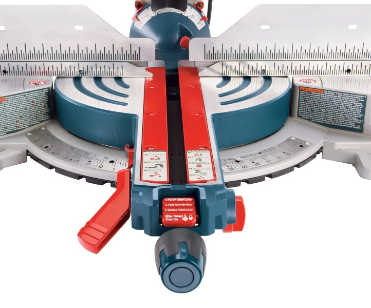 Upfront bevel controls all metal bevel lock lever and range selector located upfront for quick and easy bevel settings without reaching behind the saw