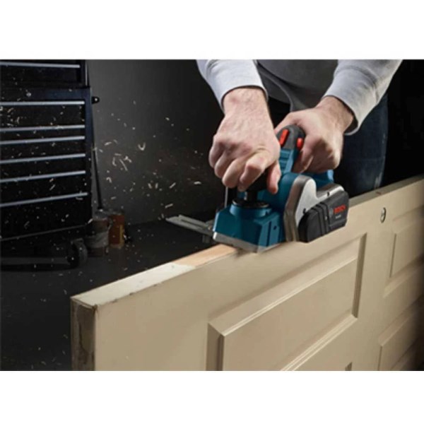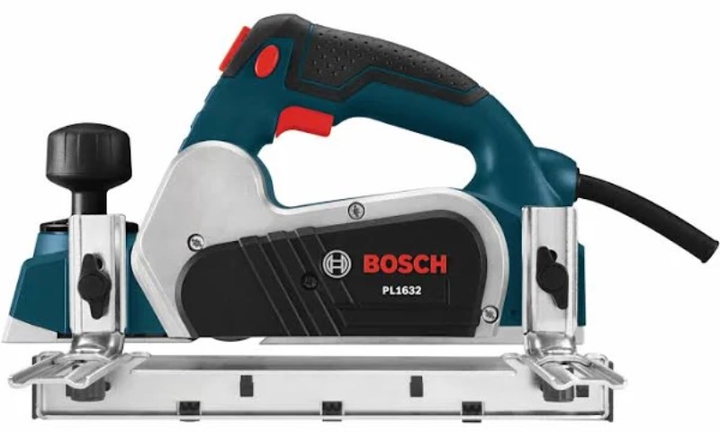 The Bosch PL1632 3-1/4 in planer delivers for pros who need to plane doors or other surfaces quickly and evenly. It delivers performance, convenience and security with an outstanding planer-guidance system. It has a 6.5 A motor that produces 16,500 rpm for fast stock removal and smooth finishes. The tool’s ambidextrous lock-off release button helps prevent avoid accidental starts and it has a lock-on button for extended operation, a combination that is unique to Bosch planers. The aluminum front and rear shoes are precision-machined together for accuracy and the tool has a machined groove for chamfering. Its counterbalanced blade design puts the blade at an ideal cutting angle and eliminates uneven planing caused by misaligned blades. The tool also provides a spring-loaded stand that elevates the planer to protect the blade. The dual-mount guide fence can be mounted on either side of tool, with a plastic overshoe that offers protection for the workpiece surface. The dust port accommodates a large shavings bag. This planer is built with a poly micro-V drive belt for enhanced belt durability and a ball-joint cord swivel for enhanced ease of positioning the tool and cord.
