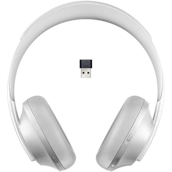 Comfortable Over-Ear Design, Adaptive 4-Microphone System, Certified for Microsoft Teams, Works with Google Voice, 11 Levels of Noise Cancellation, Active EQ Sound Management, Up to 20 Hours of Wireless Battery Life, Intuitive Controls on Earcups, Includes USB Bluetooth Module. Whether you work remotely or do video conferencing at the office the luxe silver Bose Headphones 700 UC noise-canceling Bluetooth headphones are poised to provide optimal voice intelligibility customizable audibility of your environment and simple wireless connectivity to your computer system and popular platforms such as Microsoft Teams Google Meet and Zoom. The headphones are pre-paired to the included USB Link Bluetooth module for stunning ease of setup; simply connect the USB Type-A connector into an available USB port on your computer and start using the Headphones 700 UC. Through intuitive taps and gestures on the right earcup’s touch surface you can control functions such as answering/declining calls adjusting volume skipping tracks and playing/pausing audio. Thanks to the adaptive 4-microphone system your voice will be picked up with clarity and consistency regardless of your location so you won’t have to waste time repeating voice commands or conversations with coworkers and collaborators. 11 levels of noise cancellation and a special Conversation Mode allow you to decide exactly how much ambient sound you want to hear whether you’re working indoors at the office flying to a remote destination or walking through the city. Active EQ sound management manipulates the sonic signature of the headphones to keep you immersed in your content at any listening volume. The sleek over-ear design features a lightweight padded stainless steel headband and angled rotating earcups ensuring all-day comfort. With 20 hours of wireless battery life you’re likely to wear them from morning until night
