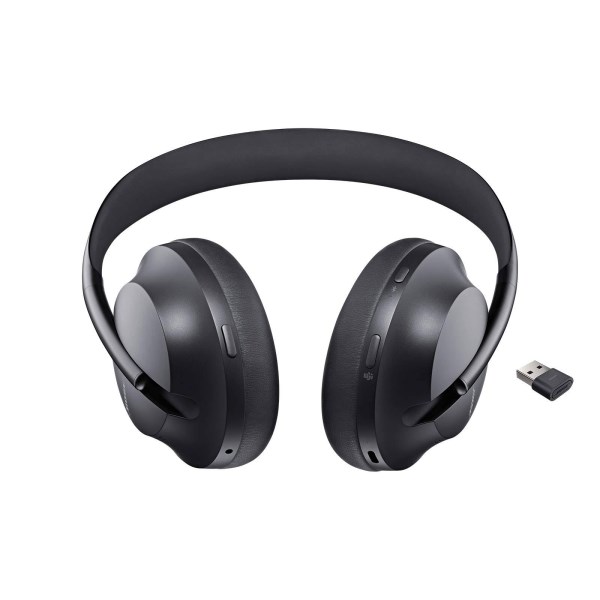 Comfortable Over-Ear Design, Adaptive 4-Microphone System, Certified for Microsoft Teams, Works with Google Voice, 11 Levels of Noise Cancellation, Active EQ Sound Management, Up to 20 Hours of Wireless Battery Life, Intuitive Controls on Earcups, Includes USB Bluetooth Module. Whether you work remotely or do video conferencing at the office the black Bose Headphones 700 UC noise-canceling Bluetooth headphones are poised to provide optimal voice intelligibility customizable audibility of your environment and simple wireless connectivity to your computer system and popular platforms such as Microsoft Teams Google Meet and Zoom. The headphones are pre-paired to the included USB Link Bluetooth module for stunning ease of setup; simply connect the USB Type-A connector into an available USB port on your computer and start using the Headphones 700 UC. Through intuitive taps and gestures on the right earcup’s touch surface you can control functions such as answering/declining calls adjusting volume skipping tracks and playing/pausing audio. Thanks to the adaptive 4-microphone system your voice will be picked up with clarity and consistency regardless of your location so you won’t have to waste time repeating voice commands or conversations with coworkers and collaborators. 11 levels of noise cancellation and a special Conversation Mode allow you to decide exactly how much ambient sound you want to hear whether you’re working indoors at the office flying to a remote destination or walking through the city. Active EQ sound management manipulates the sonic signature of the headphones to keep you immersed in your content at any listening volume. The sleek over-ear design features a lightweight padded stainless steel headband and angled rotating earcups ensuring all-day comfort. With 20 hours of wireless battery life you’re likely to wear them from morning until night.