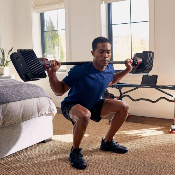 Get ready for the Bowflex SelectTech 2080 Barbell with Curl Bar to pump, you up! This barbell system is a great, space-saving addition to any home gym. The weight can be adjusted from 20 to 80 pounds in 10-pound increments with the turn of a dial. This way you’ll continue to see results as your strength and fitness levels improve. With the wide weight range, you will be able to do anything from heavy exercises like deadlifts and presses to light exercises such as curls and raises. With the included base, storage and re-racking is less of a pain and provides a smooth transition from barbell to curl bar. This full-body system replaces up to 7 barbells and 7 curl bars in one compact unique system. Enjoy customizing the intensity of your workout while saving storage space with the Bowflex SelectTech 2080 Adjustable Barbell.