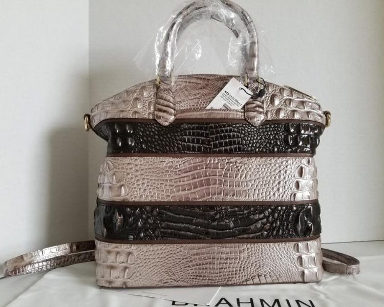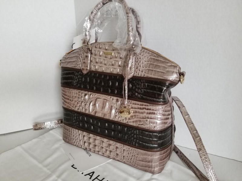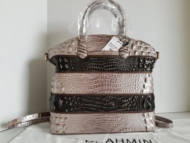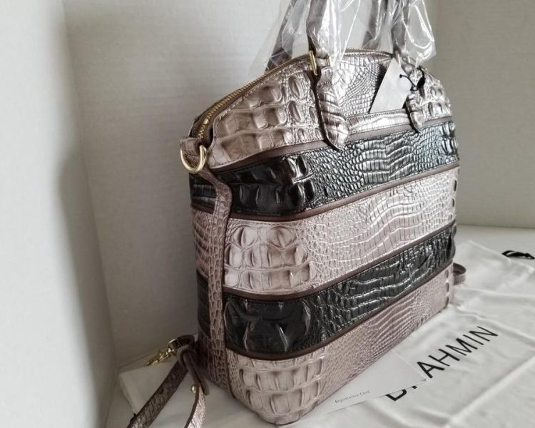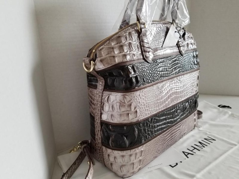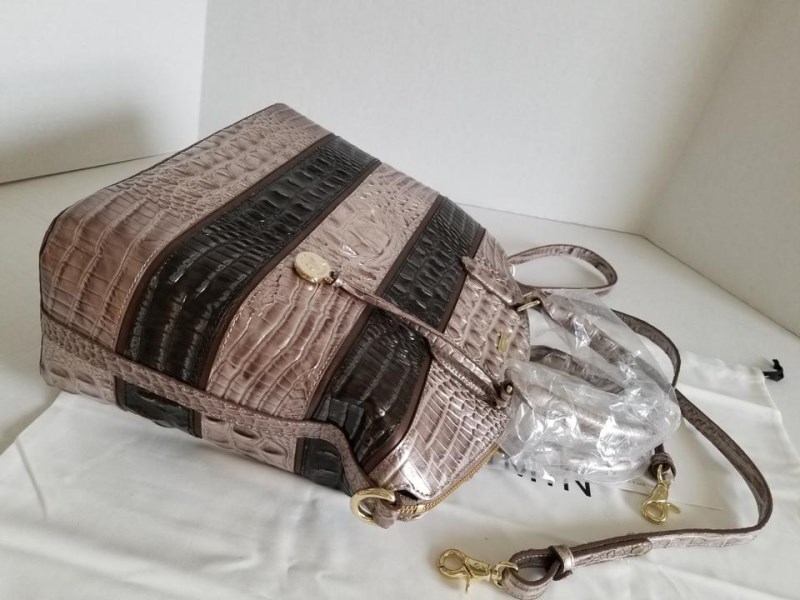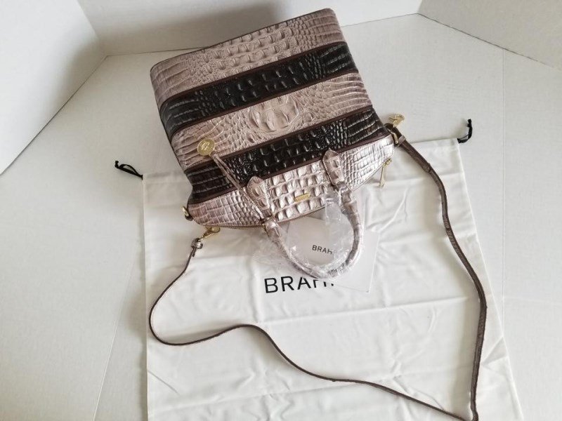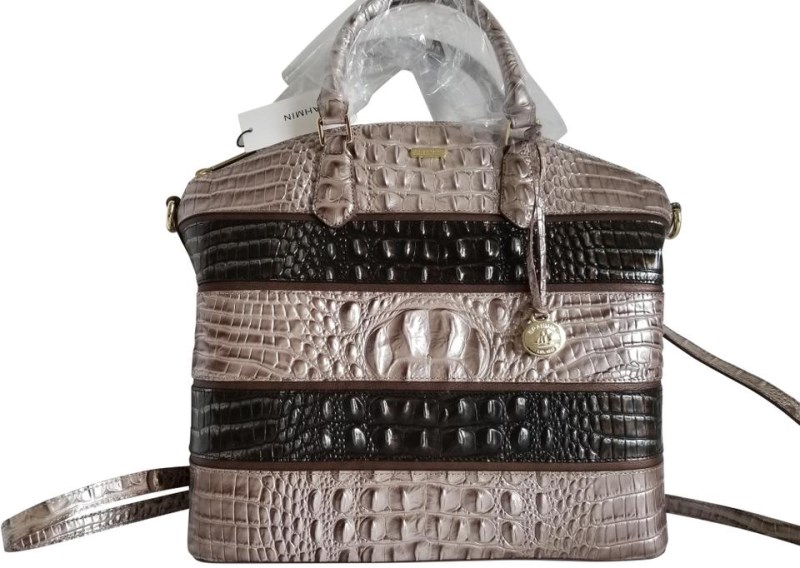 Brahmin Large Duxbury Chardonnay Cross-body Brown/Black and Light Grey Genuine Leather Satchel