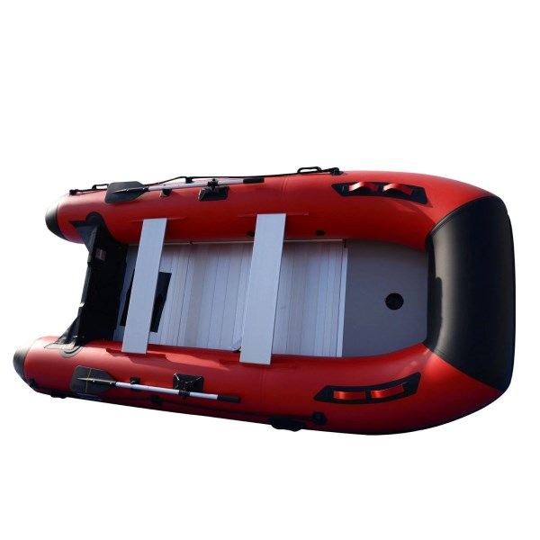 This BSR360 BRIS inflatable boat is made of 1100 denier 0.9 mm PVC fabric with an aluminum floor board and marine plywood transom. It is a much more heavy-duty PVC fabric than most 1000 denier PVC boats. This boat has round end-tubes for better performance. This allows 1.8mm of lower tube protection from sharp rocks and abrasive sands. This boat is lightweight and does not take up much space once deflated. It can take up to a 20 hp short shaft outboard motor and can carry up to 3 people maximum. The BSR360 is great a tender for yachts or sailboats. It can also be used as a lifesaving raft in case of an emergency.