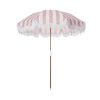 Holiday Beach Umbrella – Antique White by Business & Pleasure- Our newest addition to the Antique white collection, this classic, chic looking umbrella is hard to go past! Part of our Holiday Collection, this Umbrella has all the features of our premium style in a light-weight and convenient size. Known as our dedicated beach umbrella, our holiday beach umbrellas offer a light weight umbrella perfect for movers and shakers that are always on the go.The holiday beach umbrella is smaller in size than the premium umbrella, with the same sturdy wooden pole. The hardware consists of marine grade nylon fittings to keep your beach umbrella light for carrying to the beach. This allows for a fully adjustable pole hinge, with 180 degrees range of motion and tilt. The canvas offers a 98% blockout with UFP rating of 50+, as well as UV resistant cotton canvas to prevent color fade and is decorated with waterproof polyester cotton fringe. furniture, OUTDOOR, poolside & umbrellas, Business & Pleasure, special shops, Beach.