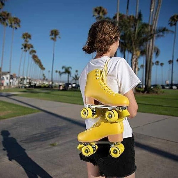 Premium Model The C SEVEN premium roller skates feature top-notch materials for extreme durability whether you’re skating outdoors or indoors. Faux leather material is tough and smooth, while the interior PVC structure gives extra support for longer skate time at the rink. Aluminum plates are durable and lightweight for smooth skating all the time. Perfect Holiday Gift With bright colors and patterns that make a statement wherever you roll, these skates are total showstoppers. Whether they’re beginners who are just learning to roller skate or already a pro on wheels, these skates will be the best thing under the tree this year. Bright and Bold Fun, summery colors and patterns make these skates stand out in a crowd. From bold monochrome palettes to snazzy floral designs, these are totally unique from any other pair of skates out there.