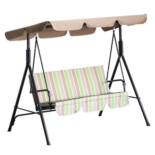 Outsunny Steel Outdoor Porch Swing Lounge Chair 3 Person with Top Canopy