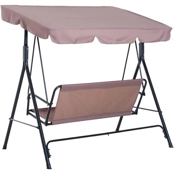 Outsunny Steel Outdoor Porch Swing Lounge Chair 3 Person with Top Canopy – Brown