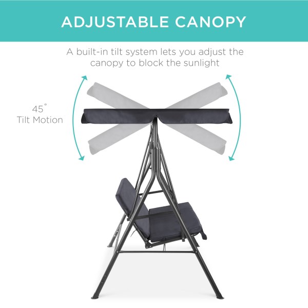 Best Choice Products 2-Person Outdoor Large Convertible Canopy Swing Glider Lounge Chair w/ Removable Cushions – Gray