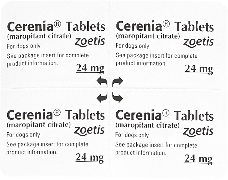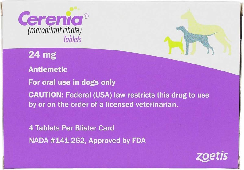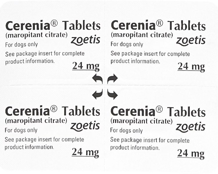 Cerenia (Maropitant Citrate) tablets are indicated for the prevention of acute vomiting and the prevention of vomiting due to motion sickness in dogs.
