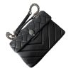 Metallic crossgrain leather Two credit card slots Snap closure fabric lining Outside open pocket Detachable chain strap with 23 1/4 drop for shoulder or crossbody wear 4 (L) x 3 (H) x 1 (W) Style No.