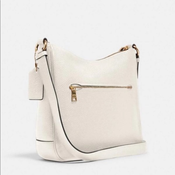 Leather 10 1/4″ (L) x 9 1/2″ (H) x 2 3/4″ (W) Refined pebble leather. Inside multifunction pocket. Zip-top closure, fabric lining. Outside zip pocket. Adjustable strap with 21″ drop for shoulder or crossbody wear.
