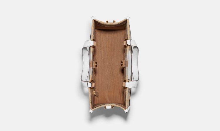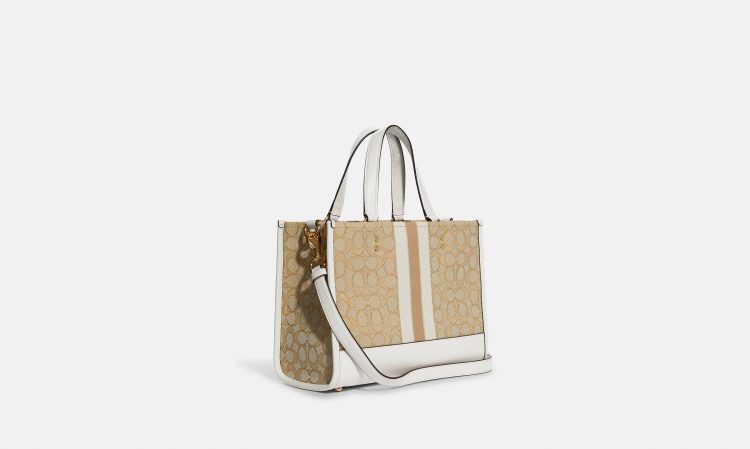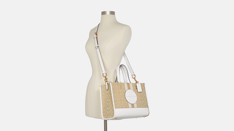 Product Details Signature jacquard and refined pebble leather Inside zip, cell phone and multifunction pockets Snap closure, fabric lining Handles with 5 1/4″ drop Detachable strap with 20″ drop for shoulder or crossbody wear 11 1/2″ (L) x 8 3/4″ (H) x 5″ (W) This Coach piece is crafted with 55% of organic cotton and 45% of polyester yarn recycled from post-consumer plastic water bottles. Wear it, love it, pass it on. Style No. C8448