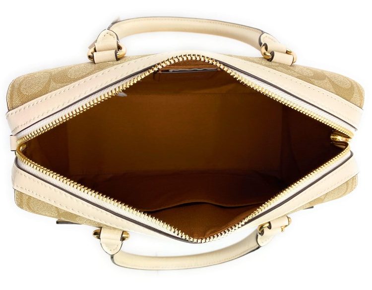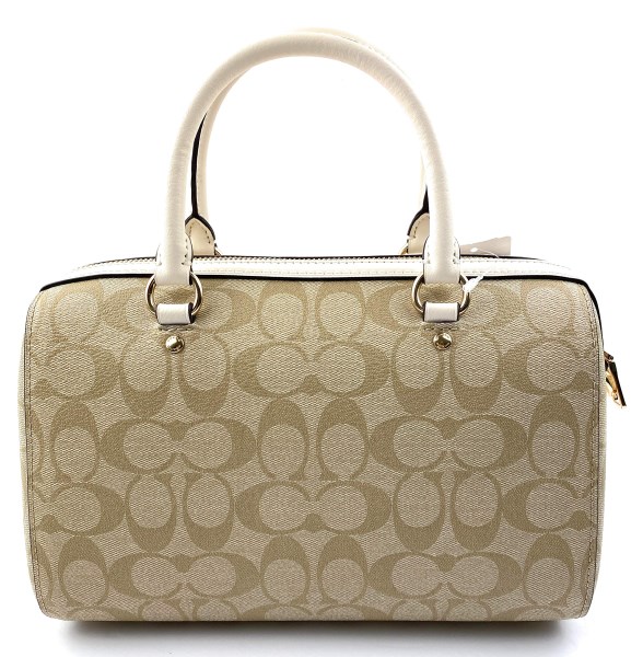 Coach White Rowan Small Satchel crafted in leather featuring zip closure, 1 compartment, inside zip and slip pockets, outside zip pocket, front logo, dual carry handles with adjustable and removable shoulder strap.Buy this luxury Satchels today!