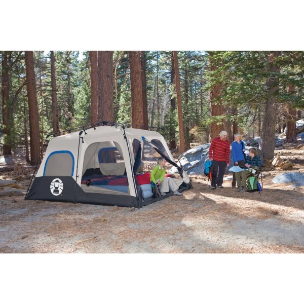 The Coleman 8-Person Instant Tent is ready to go in just one minute, so you can set up camp quickly and get back to enjoying nature. This large camping tent is outfitted with pre-attached poles, allowing you to assemble it in three easy steps. Simply unfold the tent, extend the poles, and secure them. The Weather Tec system features patented welded floors and inverted seams to help ensure you stay dry if the weather turns, while the rugged Bodyguard 2X double-thick fabric stands up to the rigors of the outdoors, so you can use the tent reliably season after season. An integrated rainfly helps keep water from getting into the tent and doesnt it require any extra assembly. This large tent offers enough room for two queen size air mattresses and comes with built-in storage pockets to help you keep your gear organized. And when it’s time to pack up, the tent stores away compactly in the included expandable carry bag that lets you tear away the rip strip for easy packing.