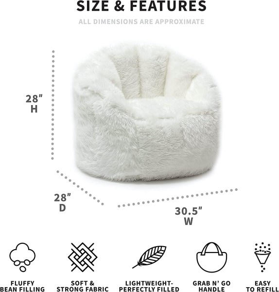 Comfort Research Big Joe Milano Bean Bag Lounger, Ivory