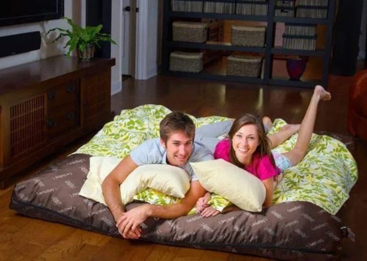 Perfect for sleepovers and unexpected overnight guests, this stylish bean bag chair converts to a comfortable full- or queen-size bed. The bean bag chair seats one adult and the bed sleeps two adults. It’s easy to remove the bean bag cover for machine washing. Space-Saving and Multi-FunctioningEasy to open, simply unzip and release the bed for sleeping. To convert back to a chair, just fold it in half and slide on the covering.