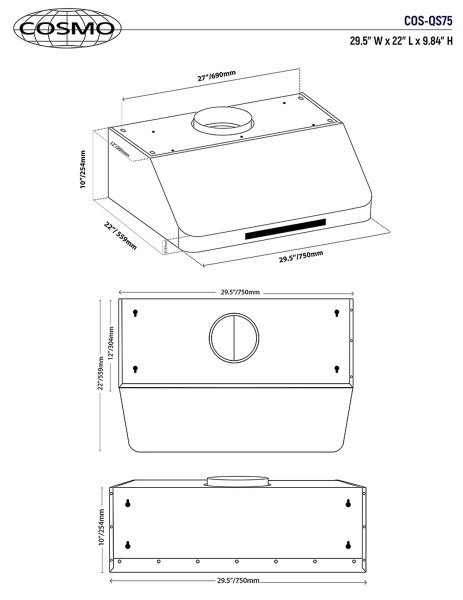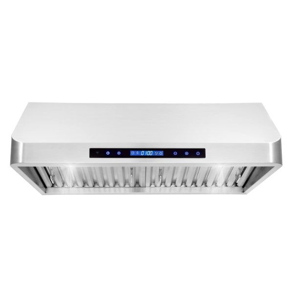 Cosmo presents a modern professional under cabinet range hood perfect for homeowners and builders with limited space. Fits easily into an existing cabinet, has premium brushed stainless steel that matches seamlessly with existing kitchen appliances for a modern upscale look. Our under cabinet range hood vents from the top and features a 500 CFM high-efficiency motor with premium stainless steel baffle filters to trap grease and oil. Newly designed, this under cabinet range hood is both energy efficient and quiet, utilizing high lumen LED lighting for year-round cost savings. Our filters save you money year after year and are dishwasher-safe for added convenience. Trust Cosmo for your next kitchen appliance for premium quality at factory direct prices. Includes 3-prong power plug for easy use.