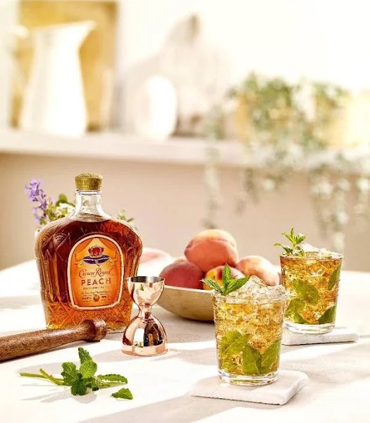Unwind in luxury with a glass of Crown Royal Peach Flavored Whisky. To create this extraordinary blend, fresh Georgia peaches are harvested, de-stoned, pressed and strained to preserve their bright, aromatic taste. Then, our master blender infuses the juicy flavor for a vibrant and delicious whisky with luscious notes of creamy vanilla and a decadently sweet finish. Made with the signature smoothness of traditional Crown Royal, our peach flavored whisky will enhance a cozy cocktail party or rooftop celebration. Enjoy our whisky mixed with iced tea for a refreshing tasting cocktail. First created in 1939 as a gift for the king and queen of England, a Canadian entrepreneur created a blend of 50 whiskies and wrapped a bottle in a regal purple bag with gold stitching. Affectionately named “Crown Royal,” our whisky maintains the integrity and quality of our process today as it was first presented to English royalty. Blended with 50 distinct whiskies, Crown Royal assures decadence in every bottle of our signature whiskies. Please drink responsibly.