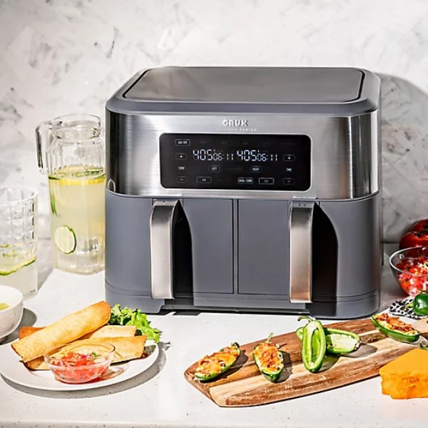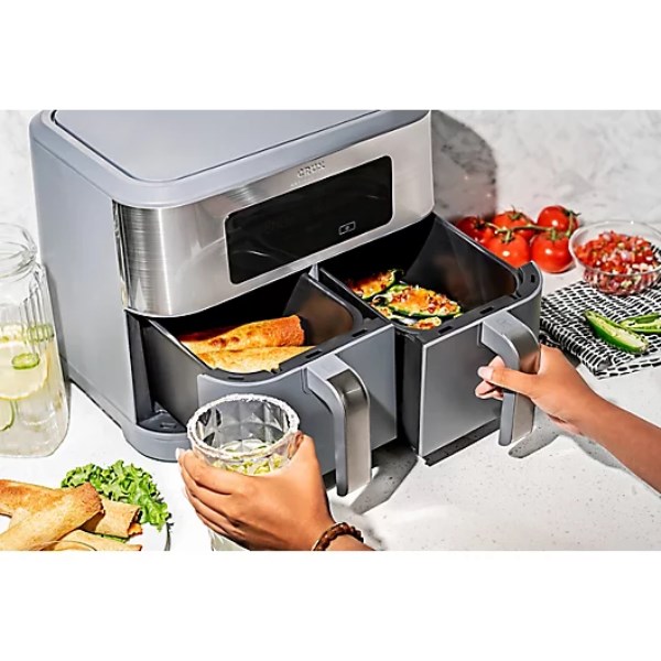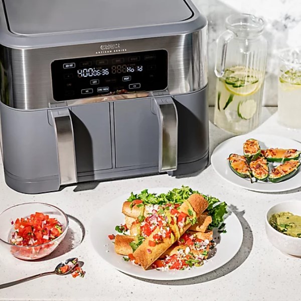 The CRUX Artisan Series 9 qt. Dual Basket Air Fryer allows you to cook 2 different foods, 2 different ways, simultaneously, and still have them finish at the same time. Thoughtfully designed and easy to operate with an innovative touch screen display.