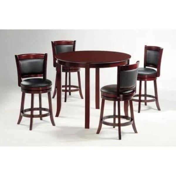 Darby Home Co Whether you’re offered a casual and stylish seat to party guests or relaxing with your favourite homemaking magazine on a lazy Sunday afternoon, this simply stylish swivel bar stool brings a dash of understated sophistication to any space. Pull a pair of these rubberwood design’s up to a matching, dark cherry-finished pub table to create a space for cocktails and conversation at your next gathering, or pull four into your kitchen island to enjoy casual and quick meals with the family. Featuring dark brown faux leather upholstery, this stool offers a touch of upscale appeal to your timeless and well-curated aesthetic. In the living room, complement its round seat with a gently tufted cocktail ottoman, then add in a faux leather Chesterfield armchair and comfy sectional sofa to round out the ensemble. As a final finishing touch, place a matching cherry-toned console table behind the sofa for a cohesive, earthy palette throughout the room.