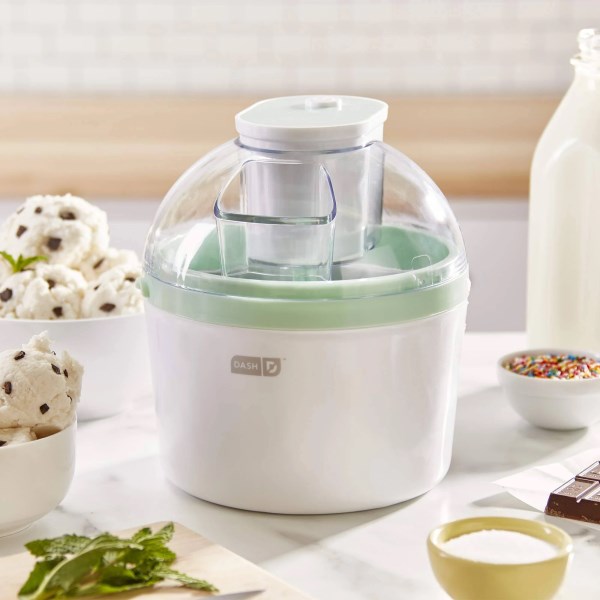 Preparing homemade ice cream and frozen treats is fast, fun and easy with the Dash Everyday Ice Cream Maker. Just freeze the bowl overnight and add the ingredients of your choice to create up to 4 cups of homemade ice cream in just 20 minutes. Make dairy-free and organic versions, and use the spout to add mix-ins like fresh fruit and chocolate chips. Insert the mold to create your favorite frozen treats. 2-in-1 machine makes ice cream and frozen treats. Makes 4 cups of ice cream, sorbet or frozen yogurt in 20 minutes. Removable mold creates 7 frozen treats. Simple to use – just freeze bowl overnight, press button and add ingredients. Spout allows you to add ingredients while mixing. Insulated double-wall cooling bowl can be stored in freezer after churning; ideal for family gatherings. Comes with bowl, frozen treat mold, 7 reusable sticks and recipe guide.