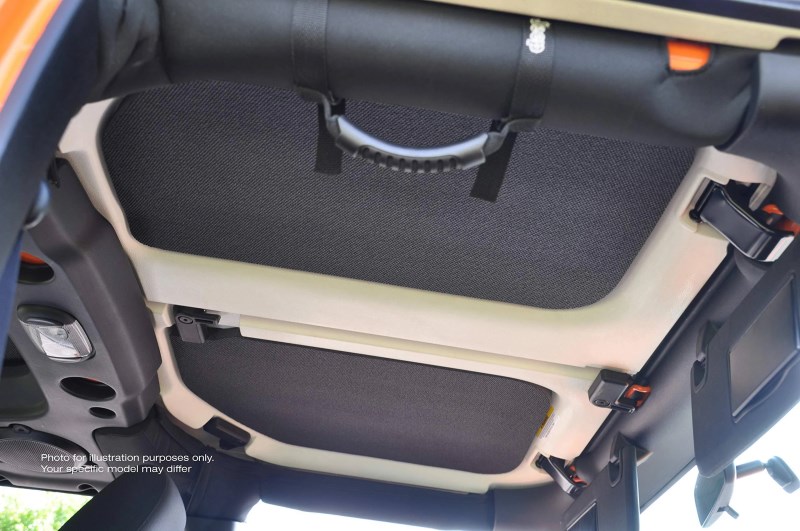 Riding in a Jeep is great fun except for the truck’s propensity for interior noise that makes it difficult to engage in conversations or even enjoy vehicle audio systems. Now there is an easy solution! Boom Mat’s Sound-Deadening Headliner for 2011 and Up Jeep Wrangler Hard Tops (4 Door) is a simple pre-shaped peel and stick kit that dresses up the interior of Jeep hard tops while minimizing annoying outside noise and vibrations. With Boom Mat, Jeep occupants can enjoy their audio system as well as have conversations without those excessive and irritating “noise” distractions. The headliner also helps insulate the interior from exterior weather conditions.
