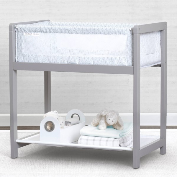 Enjoy peaceful moments from naptime to nighttime with the Classic Wood Bedside Bassinet Sleeper by Delta Children. It features a solid wood frame and gender-neutral pattern that complements any dcor. A safe and comfortable place to sleep anywhere in your home, this bassinet is lightweight enough to be easily moved from room to room. Mesh sides allow generous airflow and a large storage shelf keeps necessities within reach. This bassinet is recommended for babies 0-5 months. Max weight 30 lbs. Stop use at 5 months or once your infant begins to push up on their hands and knees, whichever comes first.Delta Children was founded around the idea of making safe, high-quality children’s furniture affordable for all families. They know there’s nothing more important than safety when it comes to your child’s space. That’s why all Delta Children products are built with long-lasting materials to ensure they stand up to years of jumping and playing. Plus, they are rigorously tested to meet or exceed all industry safety standards.