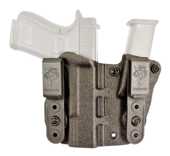 The Hidden Truth is an appendix holster with integral Mag Pouch. Built from 100% Kydex and is adjustable for height and cant. It comes with “C” clips and “J” clips are optional accessories.