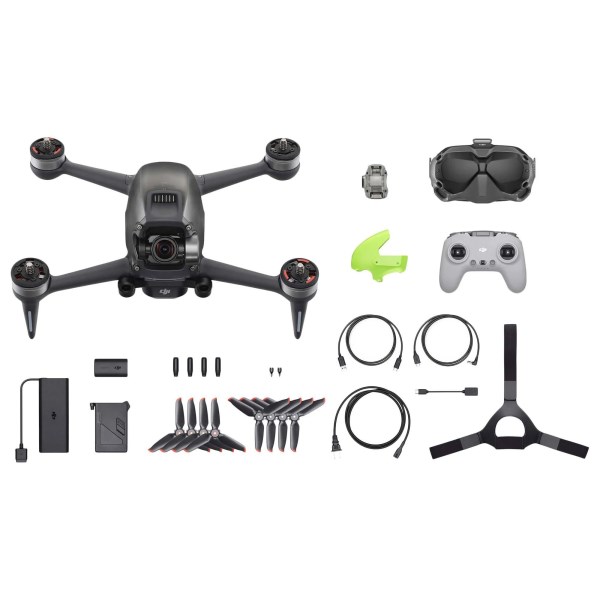 Fly in First-Person at up to 87 mph, FPV Goggles V2 Included, Record 4K Video at 60 fps, 150° Super-Wide FOV, RockSteady EIS for Smooth Footage, Up to 6.2-Mile Range with OcuSync 3.0, Front & down Obstacle Sensing, Emergency Brake & Hover, 3 x Flying Modes (N/S/M Mode), Color-Customizable Exterior Lighting Fully immerse yourself in the amazing aerial views and unbridled speed of drone flying with the combo version of the DJI FPV Drone. Using the bundled FPV Goggles V2 you get a first-person view of what the drone sees with footage that makes it feel like you’re the one flying through the sky. The onboard 4K60 fps gimbal camera can send low-latency video to your goggles for a near real-time experience. The 150? super-wide FOV lets you take in and appreciate the scope of the vistas you fly over. With three different flying modes to choose from you can fly at your own personal comfort level. When fully unleashed the FPV Drone can speed across the sky at up to 87 mph. Even at this blistering speed DJI’s RockSteady EIS (Electronic Image Stabilization) technology will help ensure the footage you capture is smooth. You can capture video on an optional microSD card (up to 256GB) at 120 Mb/s. Whether you enjoy breakneck racing or leisurely touring beautiful terrain the FPV Drone gives you an intimate experience unlike traditional piloting.