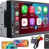 Double DIN Car Stereo with Apple Carplay and Android Auto, 7 inch Touchscreen Radio with 2 USB Ports Bluetooth 5.0 and 12led Backup Camera, Phone