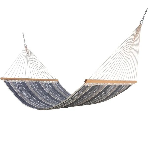 Lazy Daze Hammocks 55″ Double Size Quilted Fabric Hammock with Hardwood Spreader Bar and Poly Head Pillow Stylish for Two Person, Blue Chevron Stripe HYGLAX Color: Blue Chevron