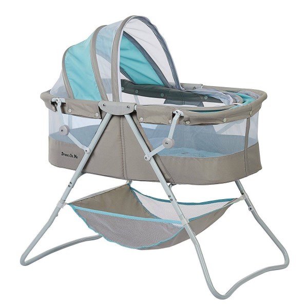 LIGHT & VERSATILE: The Karley Bassinet is designed with a lightweight aluminum frame that allows you to move it easily from room to room. It comes with a no-tool assembly & quick-folding mechanism. Use it indoors and carry it outdoors without any hassleROOMY INTERIORS: With dimensions of 33Lx19.5Wx37H inches, the Karley is as spacious as they come. The roomy, airy bassinet features an adjustable double canopy that keeps bugs away; There is also a large storage bag to hold your babies essentialsSTYLISH LOOK: The Karley is made out of a soft, safe and comfortable polyester foam fabric, which is easy to clean. It is available in nine beautiful finishes, allowing it to blend in beautifully with the nursery of your dreamsMATTRESS INCLUDED: It includes a dual-sided 1-inch thick mattress pad as recommended by the ASTM & CPSC. Mattress pad specs are 30Lx15Wx1H inches. It meets flame retardants requirement of CPSC.OTHER SPECS: The Karley Bassinet weighs 12.4 pounds and is recommended for newborns up to 25 pounds. The height with the canopy is 37 inches, height without is 27. Folded Dimension: 19.5 x 6 x 32 H inches