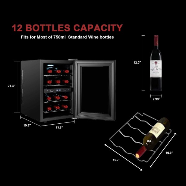 Maisee Wine Cooler are specially designed for wine enthusiasts and consists all the amenities to prove it. the unit is vibration free cooling system and allows the wine to stay steady as it should not shake too much . This allows the wine to age properly and provides a full flavor and soothing aroma . FEATURE * 12 Bottles mini small wine cooler * Dual Zone Cooler * Thermometric Technology : Low vibration & Low Noise * Wine Cooler Temperature Range : 45-65°F(8-18°C ) * Dimensions : 19.9”(D)x19.7”(W)x14.