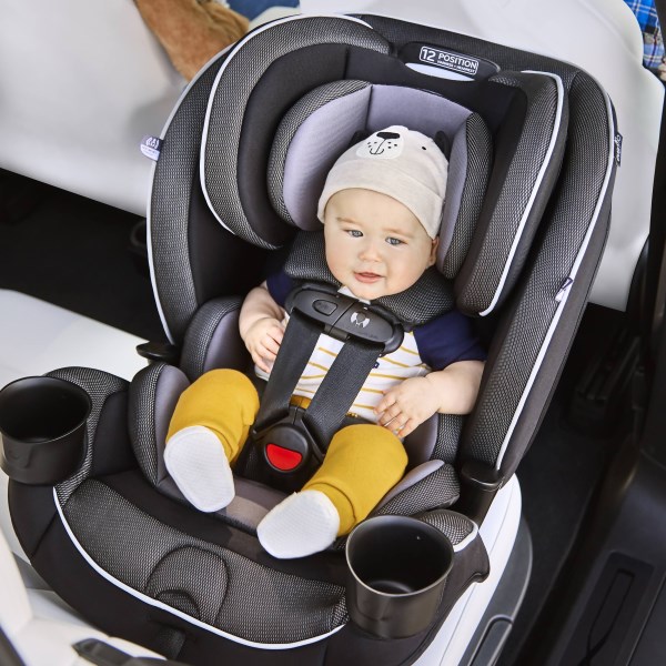 The EveryFit 4-in-1 Convertible Car Seat from Evenflo adjusts and changes to accommodate the needs of your growing child. A rear-facing harness sets up your baby for a safe ride, while a forward-facing harness helps you set up your kiddo for trips in the car when they’re at least two years old. This seat continues to accompany your kiddo as they get older, as the removable back and no-back booster help them sit without the back support. Cup holders and snack trays make it easy to quell hunger spells without making a mess, and further customization helps to suit the needs of your child with a number of reclining positions and headrest positions.From newborn for Rear-Facing, at least 2 years for Forward-Facing Harness, at least 4 years for Belt-Positioning Booster