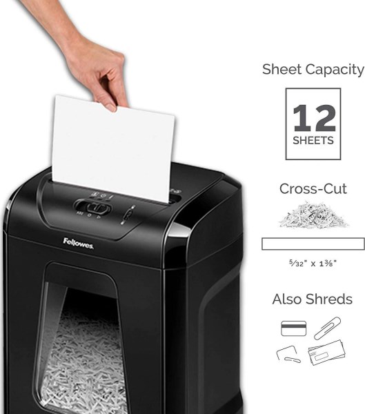 Keep information secure by shredding private documents with help from this shredder that tears items into 3/16 inch x 1-9/16 inch shreds. The 10-minute run time lets the shredder operate continuously to help you complete tasks efficiently. Shreds paper and also staples, paper clips and unopened junk mail. 5-gallon pullout bin allows less emptying. Shreds up to 12 sheets per pass. Cross-cut shredder tears items into 3/16 inch x 1-9/16 inch particles. Ideal for confidential documents shredded to security level P-4. 10-minute continuous run time helps make shredding tasks go quickly. 9 inch entry slot provides ample space. Safety Lock allows you to disable the shredder when not in use.