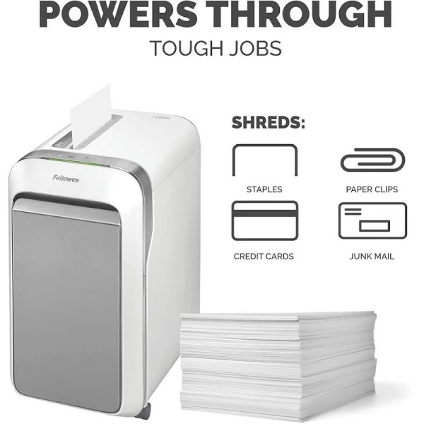 The LX220 effortlessly power through paper jams with 100% Jam Proof technology. Monitor real time performance with bin full and runtime indicators and optimize how many sheets to feed at one time with the efficiency meter. Integrated Safe Sense Technology keeps shredding safe and accident free. Shreds 20 sheets of paper per pass into 1,257 5/32 x 1/2 micro-cut particles for superior security (Security Level P-4). Also shreds staples, paper clips, plastic credit cards and unopened junk mail. Shreds continuously for up to 30 minutes before a 15-minute cool down period is needed allowing you to complete your shredding job in one sitting.