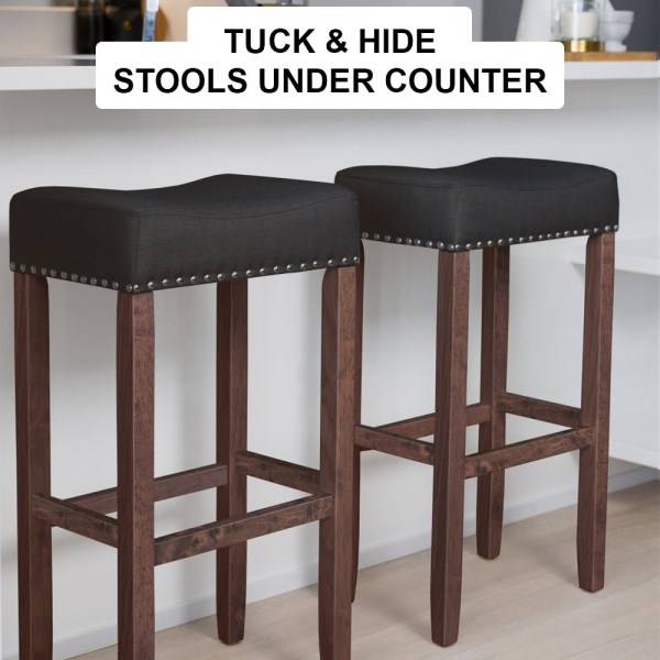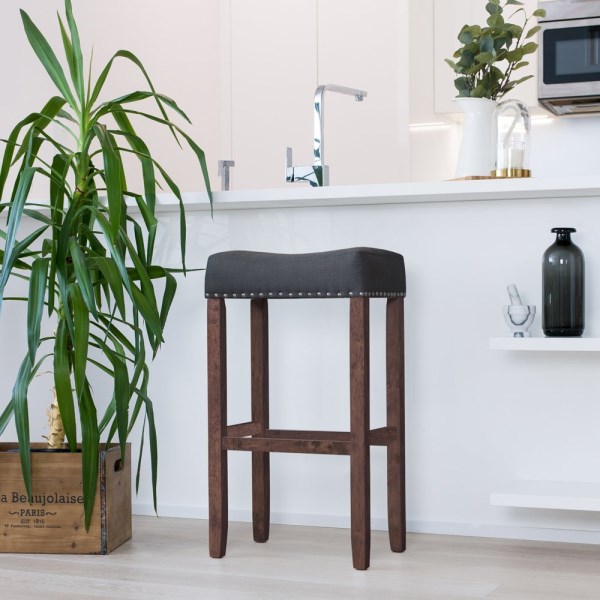 Enjoy a refreshing update to your home bar with the Nathan James Hylie Bar Stool. Constructed with a 4-inch cushioned seat and wooden frame legs with stretchers, this backless chair is sturdy and never goes out of style.?Perfect for contemporary kitchen counters or pub tables 34-36 inches high.