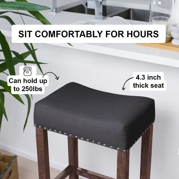 - Built with 4-inch comfortable cushioned seat and pinewood legs with footrests.