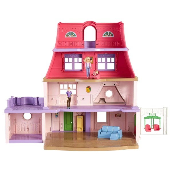 Ding-dong! Anybody home? In the Fisher-Price Loving Family Dollhouse with Figures Playset, you’ll find Mom, Dad, and Baby ready to invite you into their spacious, stylish 4-floor home! Little girls will love all the special touches inside, like a 4th floor balcony, and a 2nd floor patio from the kitchen! There are 6 spacious rooms to explore, but lets take the side entrance back outside, there’s even a doggy door! Outside you’ll also find the flip-out swing set with a sweet seat for Baby! This playset opens wide for play, with 4 floors and 6 spacious rooms, a flip-out swing set with 2 swings is also included and folds easily for storage! Requires 2x ‘AA’ batteries. Ages 3 and up.