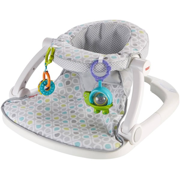 The Fisher-Price Sweet Snugamonkey Sit-Me-Up Floor Seat with Tray has a super-soft (and super-adorable) monkey seat pad and a wide, sturdy base to help support your baby comfortably as you sit them up. So, whether they’re enjoying a tasty snack on the dishwasher-safe tray or just monkeying around with the toys, your baby is safe and cozy with this monkey pal. Where development comes into playSecurity & Happiness A comfy and supportive upright seat on a wide, sturdy base lets your baby see and interact with their surroundings (and you ). Fine Motor As your baby grasps and interacts with the toys, they’re strengthening dexterity and hand-eye coordination.