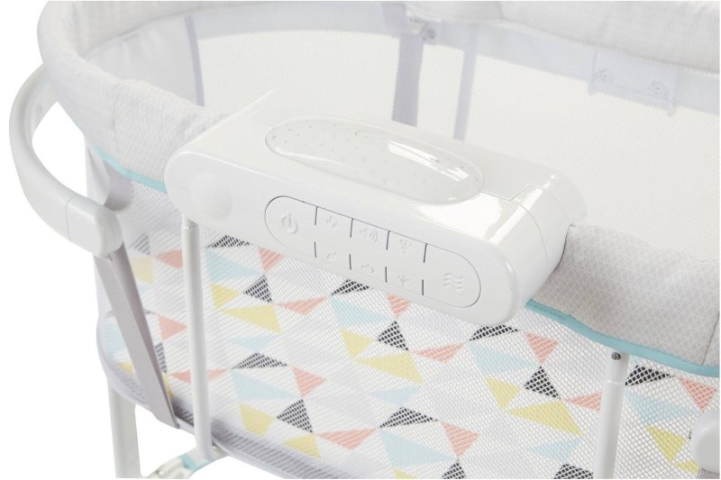 From soothing sways, music and sounds to calming vibrations, light projection and more, this bassinet has everything to help little ones drift off to dreamland in comfort. As babies relax on the comfy sleeping pad, they can look up at the mesmerizing overhead mobile with stars while they gently sway. Or, turn on one of the captivating light features, like the overhead projection. You can also remove the projector from the bassinet and use it as a tabletop soother! And, there’s a convenient night light setting for an added sense of security. For extra coziness, turn on the calming vibrations and serene songs or sounds.